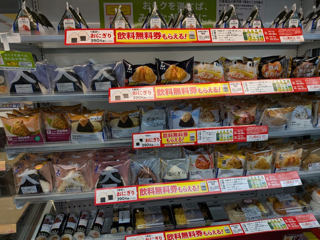 By 7am we texted Bart and Ale to see if they were awake, and Bart was. Bart and I decided to go out for a quick walk and look for breakfast. Nothing nearby was open yet, so we ended up at a Lawson convenience store, which turned out to be a fun little adventure on its own. I picked up a handful of snacks to try: an egg sandwich, a tuna sandwich, melon pan, a caramel latte, and some rice crackers.