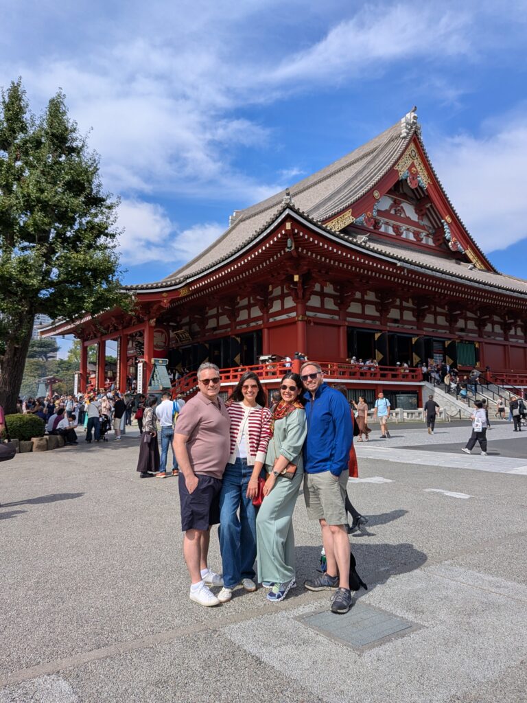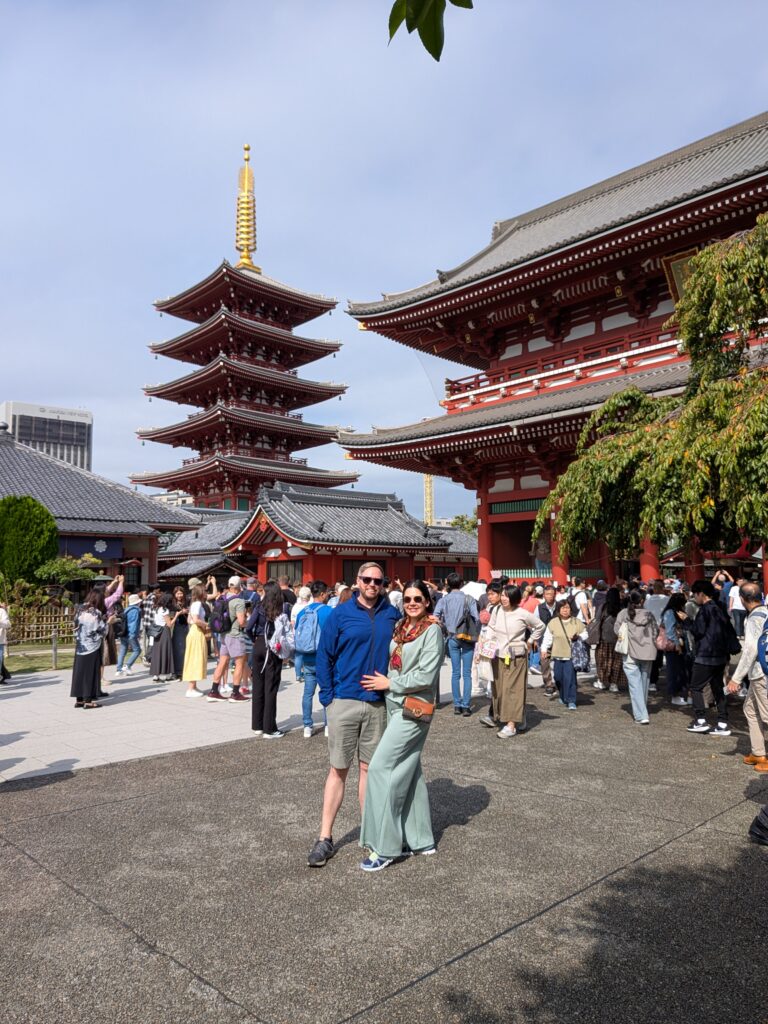 We spent about an hour wandering through the grounds, soaking in the views of the temples, the smell of incense, and the energy of the crowds. It was our first real taste of old Tokyo, and it didn’t disappoint.
