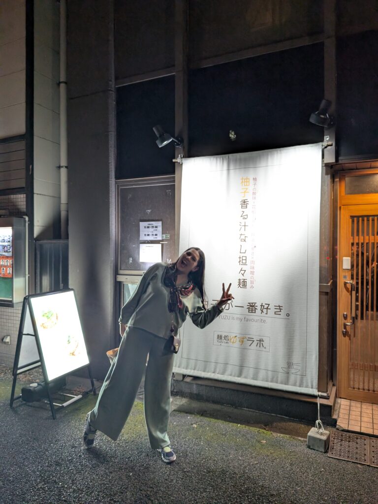 Later in the evening Bart and I went out again and met up with the girls for dinner at Yuzu Lab Noodle Shop. This was our first experience with Japan’s famous vending-machine ordering system. You put money into the machine, press the number for the dish you want, and it prints out a little ticket. You hand that ticket to the staff when you sit down, and a few minutes later your meal arrives exactly as ordered.